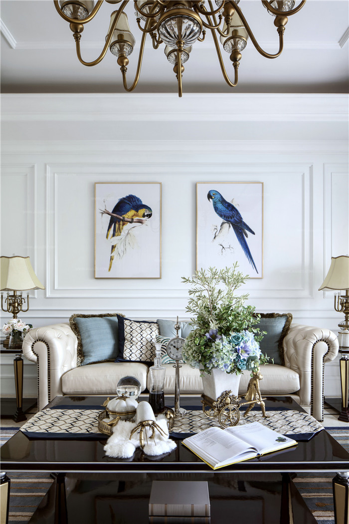 法式風(fēng)格-客廳-吊燈-沙發(fā)-掛畫-當(dāng)純白遇上法式 330㎡法式復(fù)古風(fēng)格