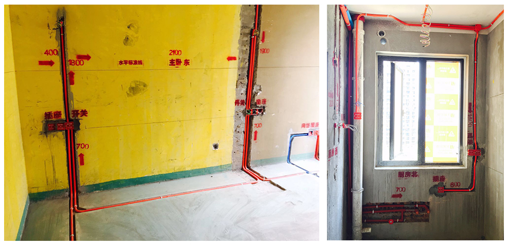 細(xì)節(jié),開槽橫平豎直,強(qiáng)電紅管,弱電藍(lán)管,分管分槽,線槽切口倒角!