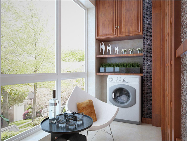 11、有些家居,衛(wèi)生間空間有限,然后洗衣機(jī)放不開,可以考慮把洗衣機(jī)放置在陽臺上,這樣一來節(jié)省空間,二來又讓陽臺的空間得到了有效利用。