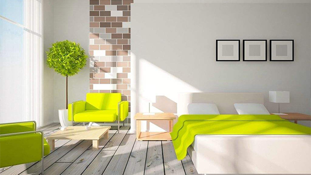 第二種輕快色系:中心色為黃、橙色。選擇橙色地毯,窗簾、床罩用黃白印花布。沙發(fā)、天花板用灰色調(diào),在搭配一些綠色植物為襯托,使居室充滿愜意、輕松氣氛。